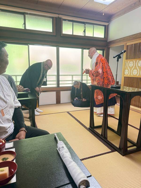 薬王院についた一行は本堂に参拝し、高尾山薬王院貫主佐藤秀仁猊下お導師のお護摩祈祷に参座し、善心会会員一同の心身健全、無病息災、家内安全、諸願成就をご祈念いただきました。その後、大本坊の広間で佐藤猊下より親しくご挨拶をいただきました。